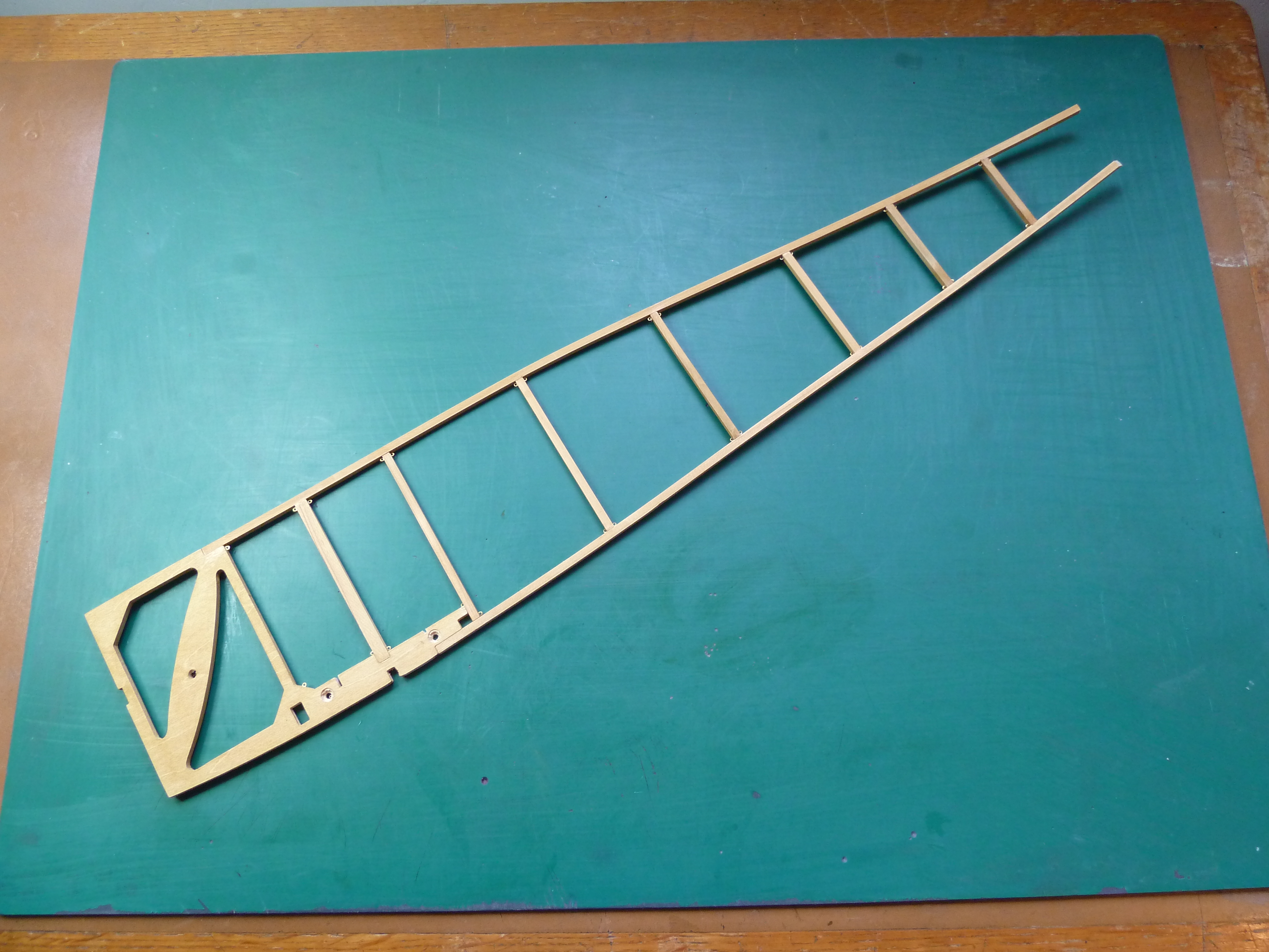 I didn’t want to make the cuts as they’d be very visible and weren’t on the real aircraft, so I just went with dampening the wood prior to bending and omitted the saw cuts. In fact I put the pieces in near boiling water for a few minutes and found they bent to shape easily.