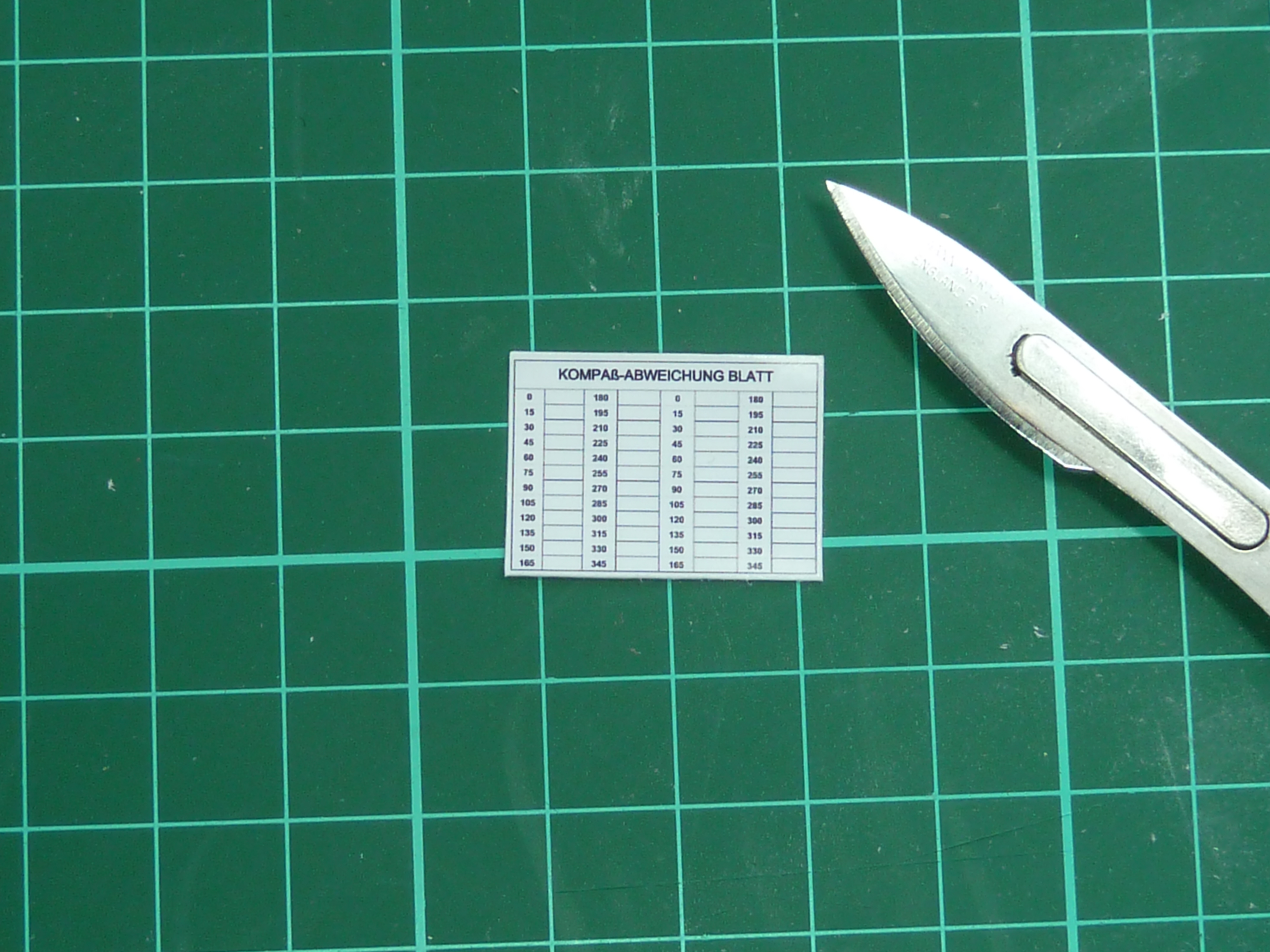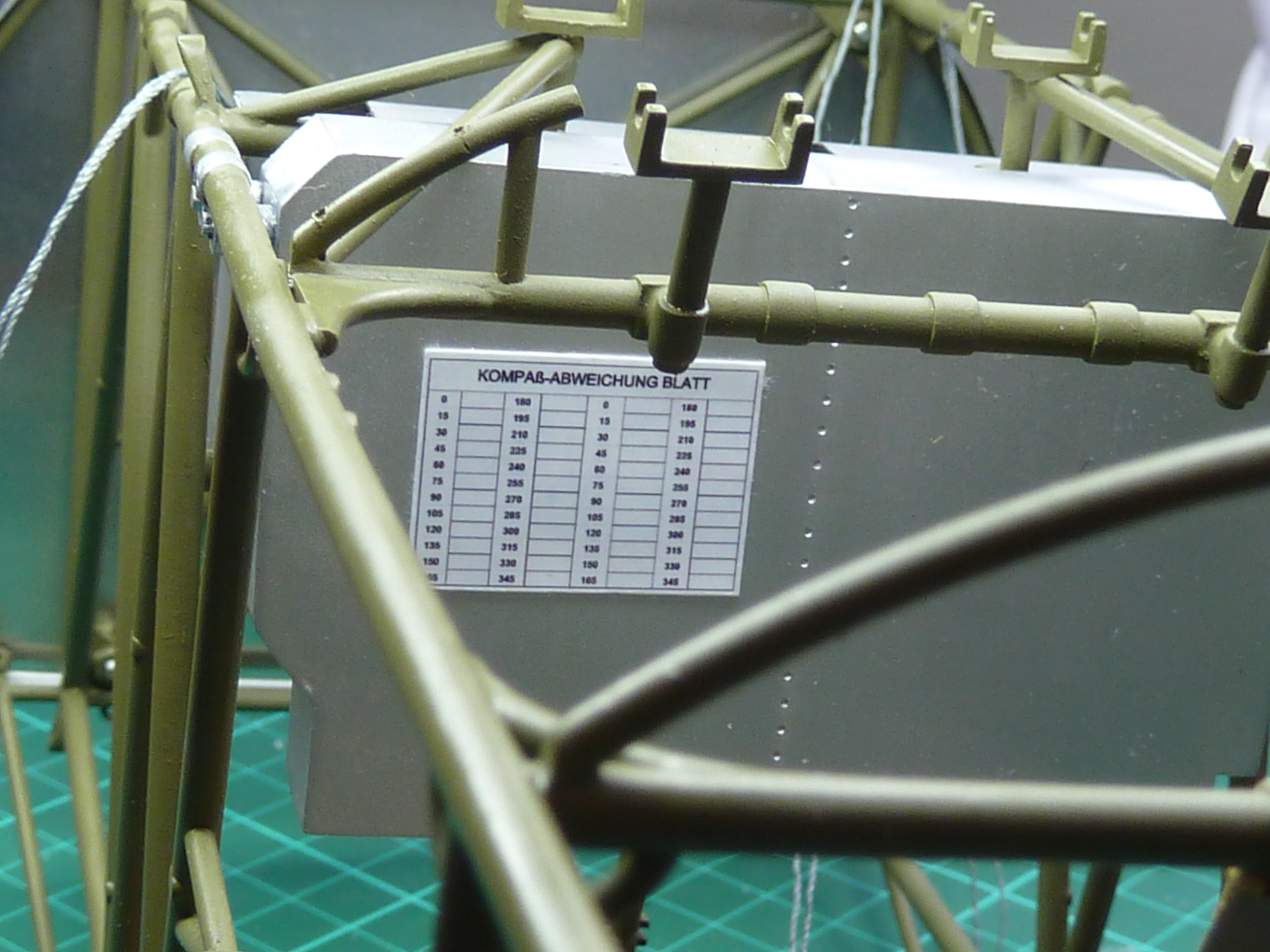 Another minor bit of detailing concerned the compass deviation card. This was fitted to the rear of the ammunition bin above the pilot’s left leg. Rather than make a decal for this, I simply knocked one up in Excel and printed it to scale on photo paper. I then stripped the backing off the paper to get it down to a realistic thickness and fixed it in place with CA glue.