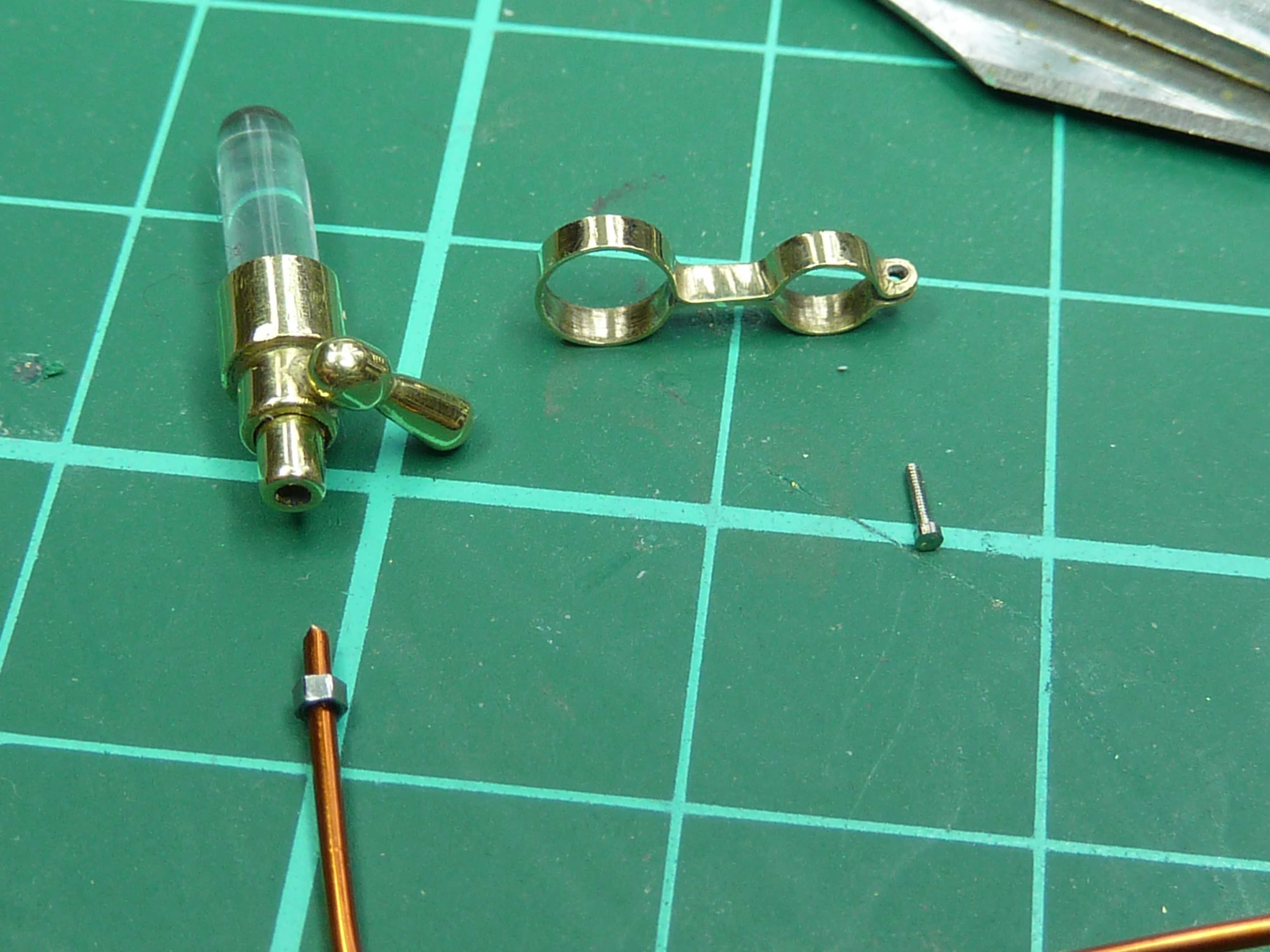 The kit completely ignores this item so I had to make one from scratch using brass tube, rod and a piece of clear plastic sprue polished up.