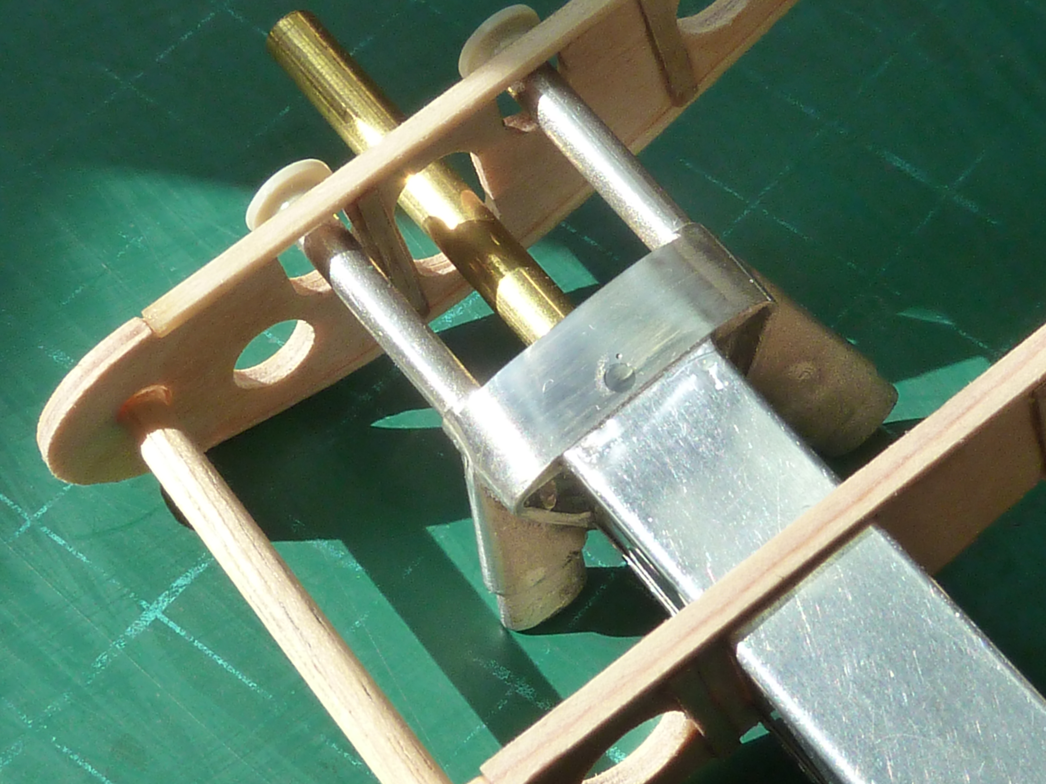 The mounting points for the struts and rubber bungee suspension are made up of white metal castings in the kit and mimic the real thing quite well. However they are attached to the spar using 2 mm bolts (again) which are vastly overscale and weren’t there on the real thing anyway.