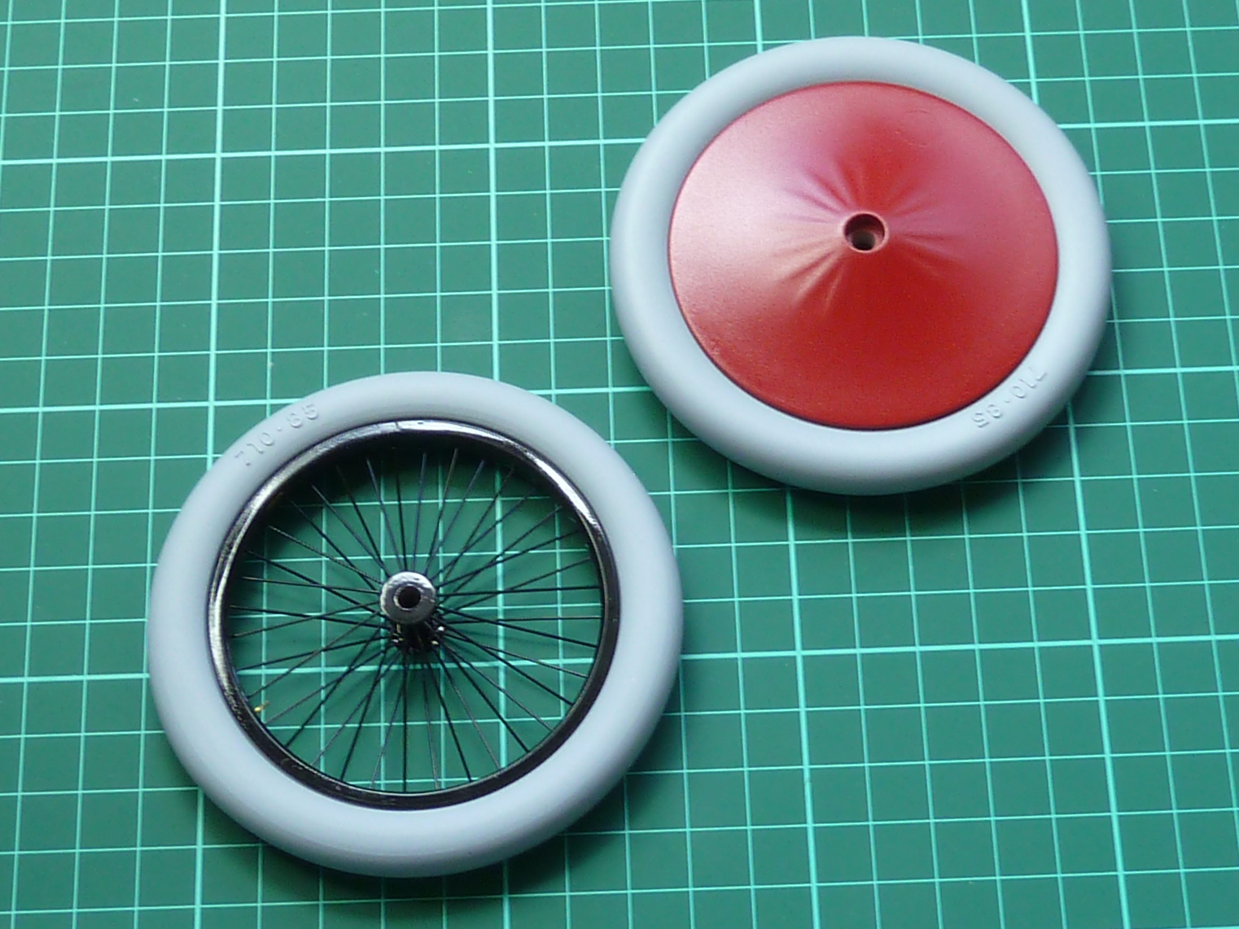 I’ve made the wheels with the spokes emerging radially, whereas I’ve noticed that quite a few other modellers have them at an angle or even tangential to the hub. Both may be correct as it’s quite possible different wheels were used during the manufacturing run. However, my design is based on a photograph in Paul Leaman’s book, Fokker Dr.1 Triplane: A World War One Legend, of what is reputed to be an original unrestored Dr.1 wheel. One slight modification I did make though, was to change the number of spokes from 40 to 36. It makes marking out an awful lot easier and I doubt many will notice…