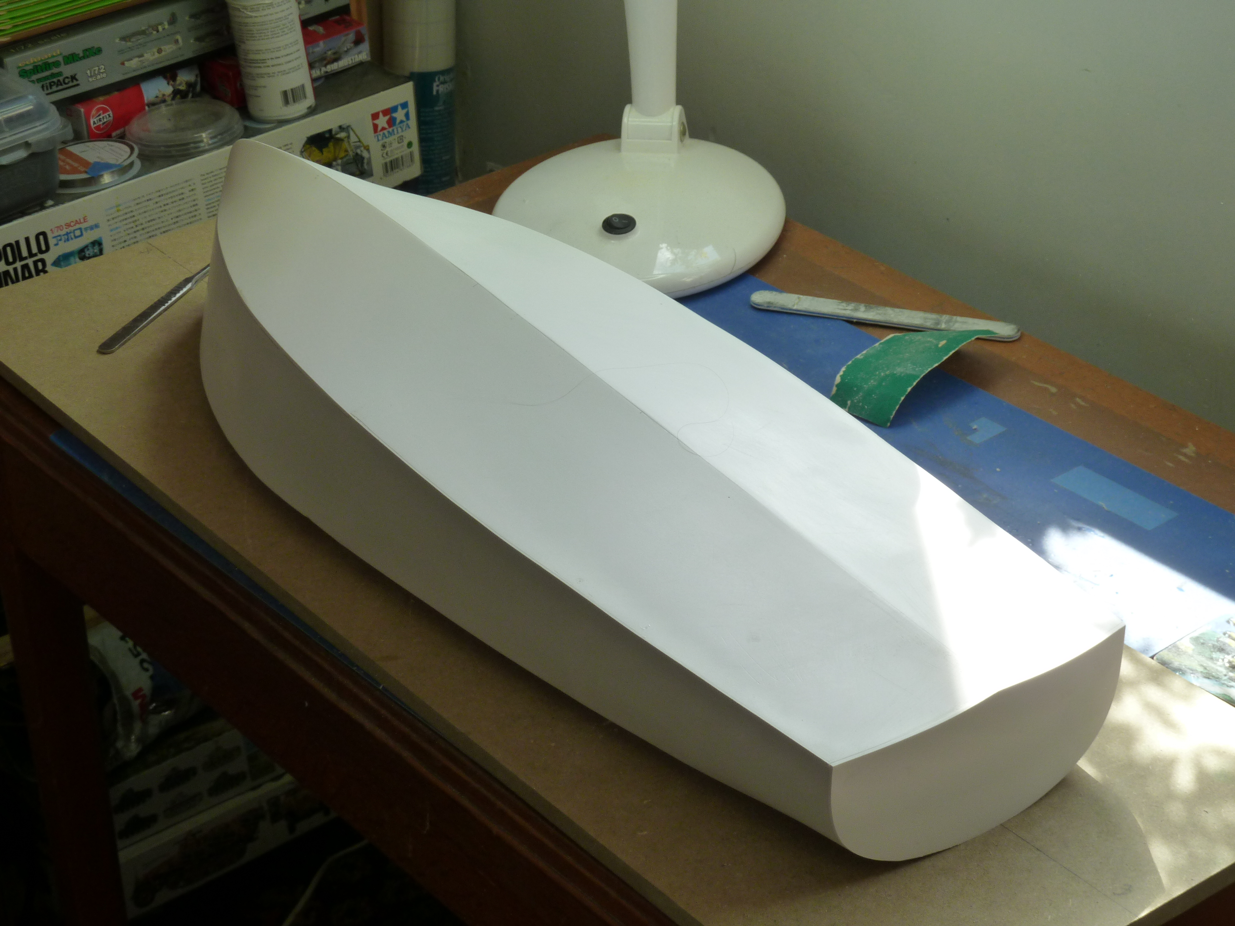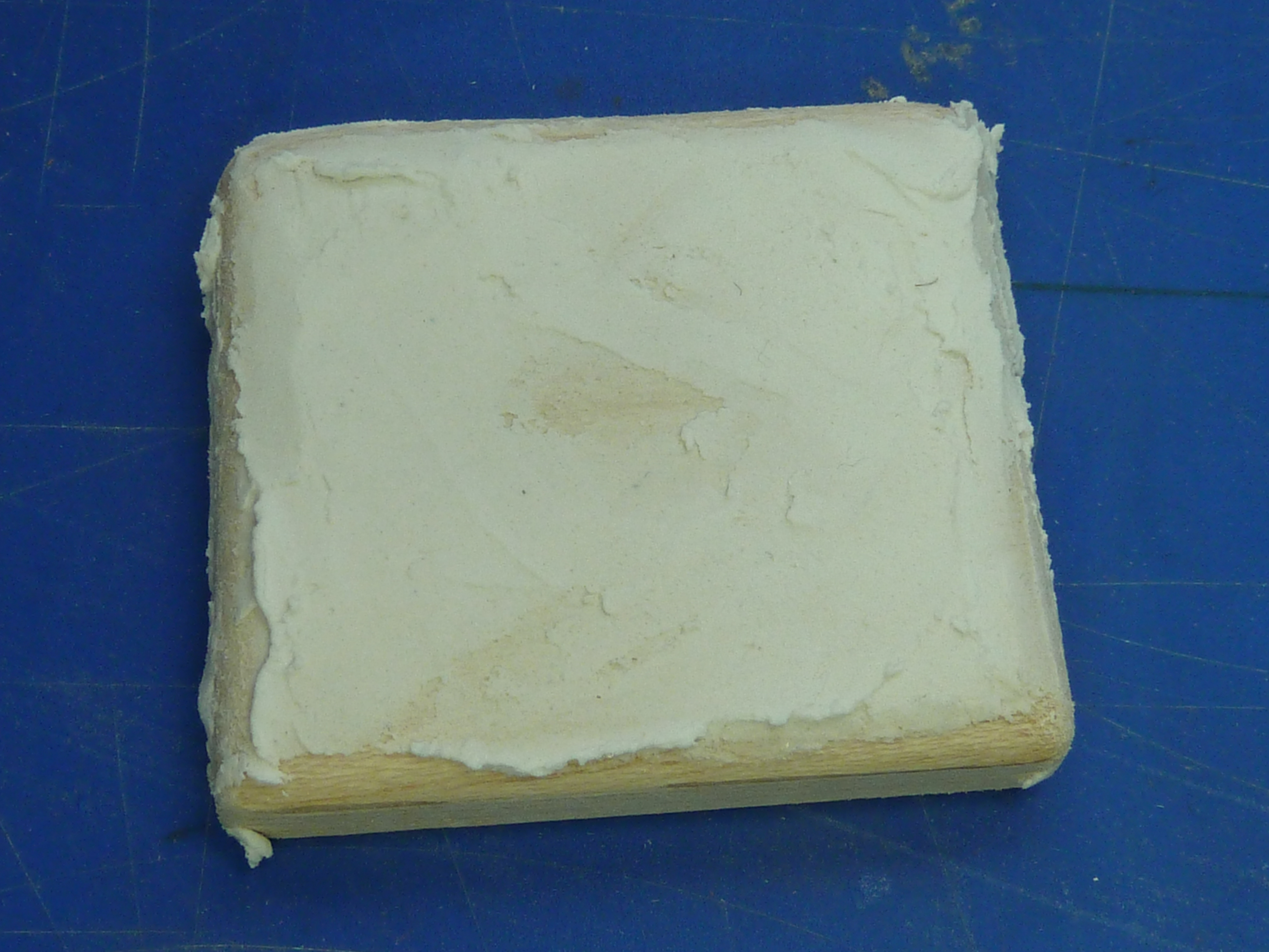 The basic shape was cut from balsa block and then a thin layer of Polycell crack filler smeared on top and left to dry thoroughly.