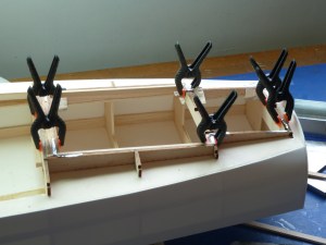 It was a bit out of sequence to be planking the thing at this stage, but I wanted to get an idea of how easy, or hard the operation was. The answer was, that it is easier than I expected. Just take care with lots of test fittings and it’s not too hard. The main problem for me was the amount of glue I got on my fingers.