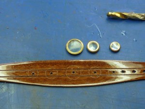 The first thing to do was to find something that would do as instrument cases. I don’t have a lathe so I needed something that I could buy in. After a fairly lengthy search on the net I finally found some glazed portholes which were close to what I wanted. They were a little thick in the rim and were brass but it was the best I could come up with. I did think about trying to nickel plate the ‘bezels’ but that’s a skill I haven’t perfected yet, so I left them as they were.