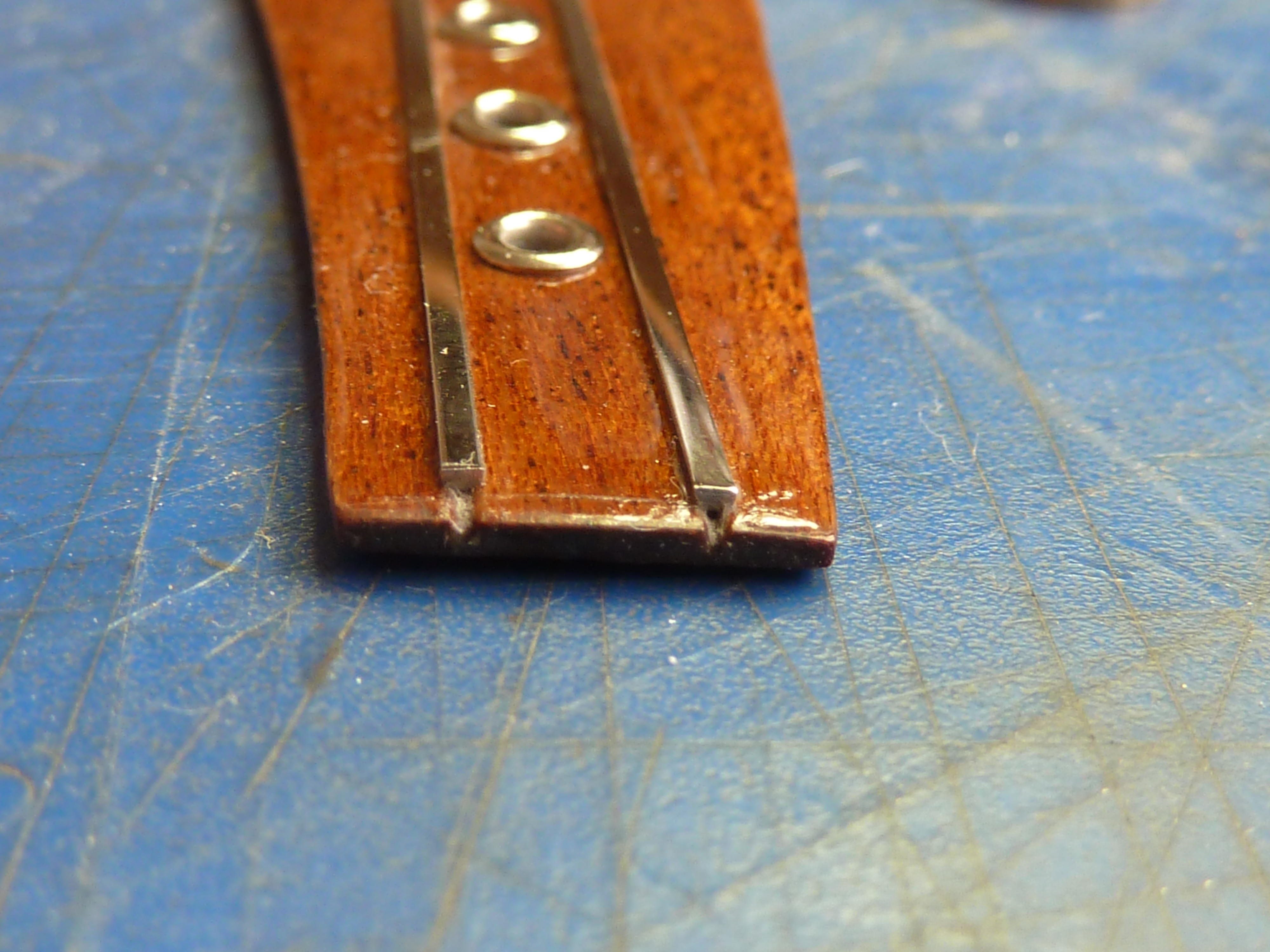 The fixing screws were simulated with 1mm stainless steel rod sanded flush to the surface.