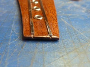 The dashboard also has some chrome trim strips across it. I decided to simulate those with 1mm stainless steel rod filed flat almost flush with the surface of the dash.