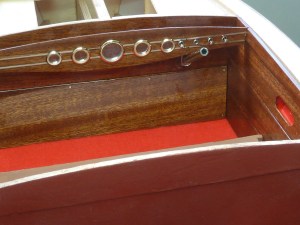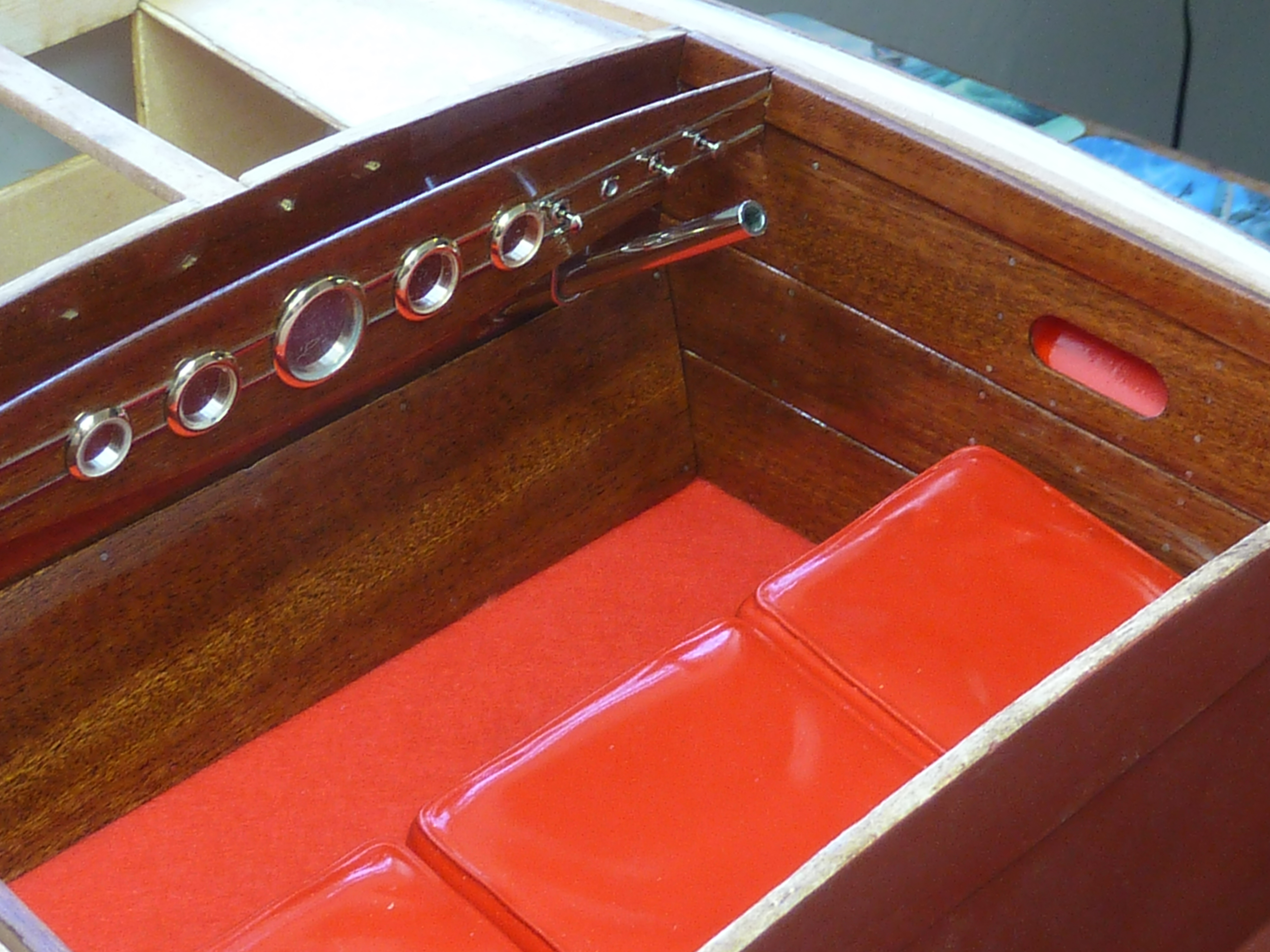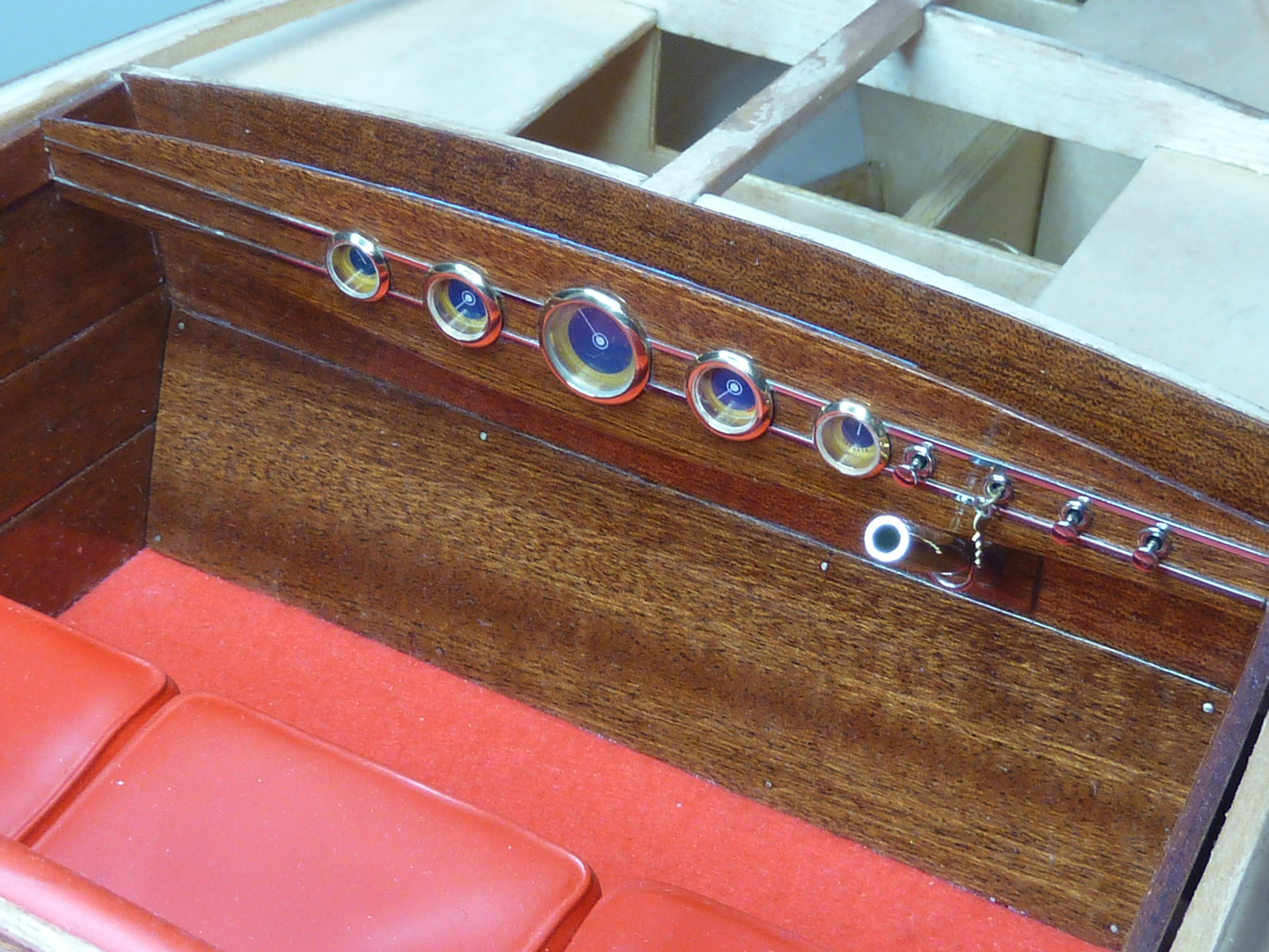 The instruments and dash trim, that you can see in the real boat picture above, are simulated in the kit with a simple sticker.