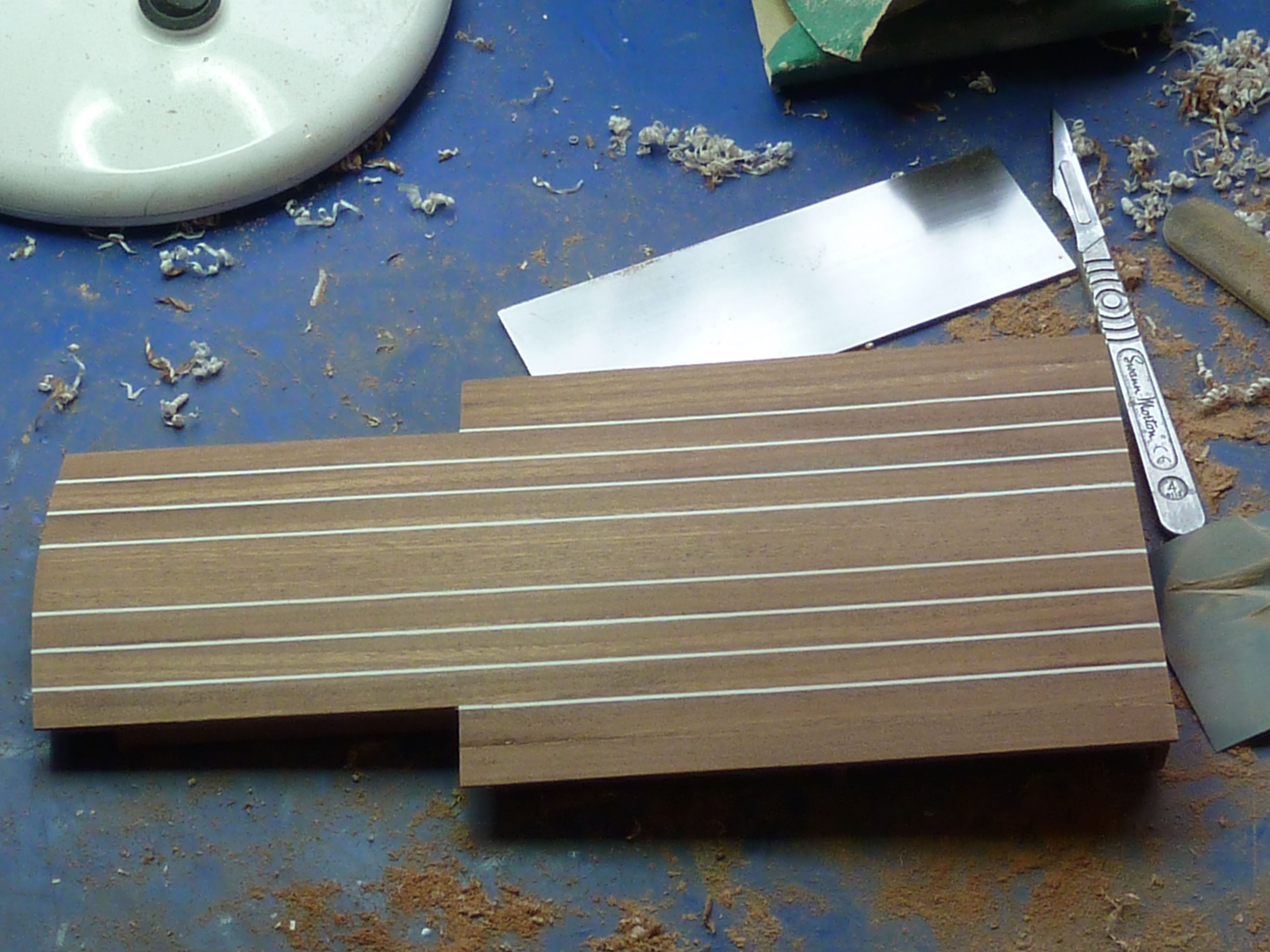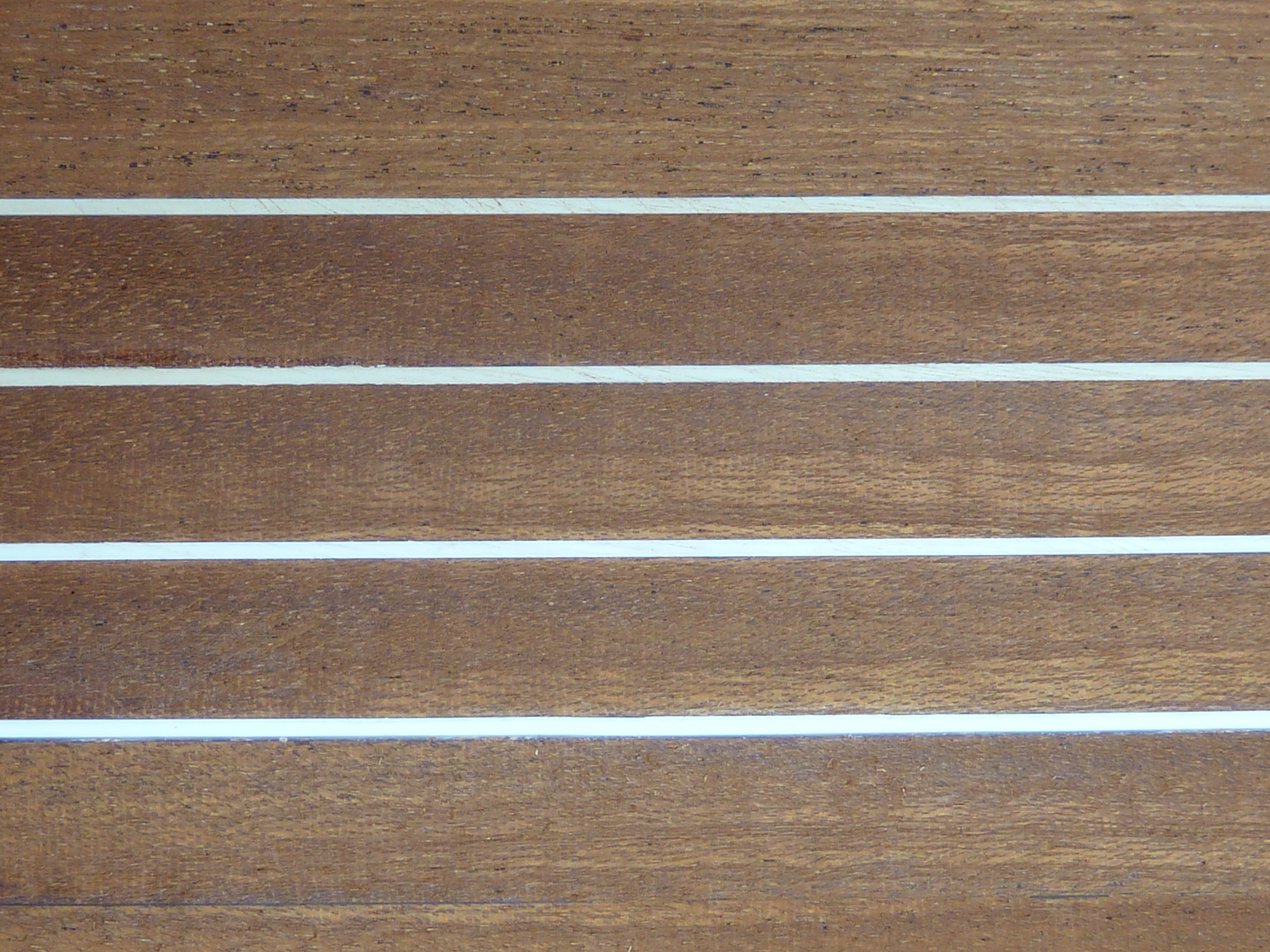 The white stripes between the mahogany planks are simply strips of white polystyrene by the way.