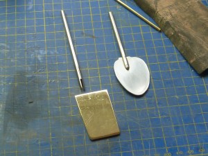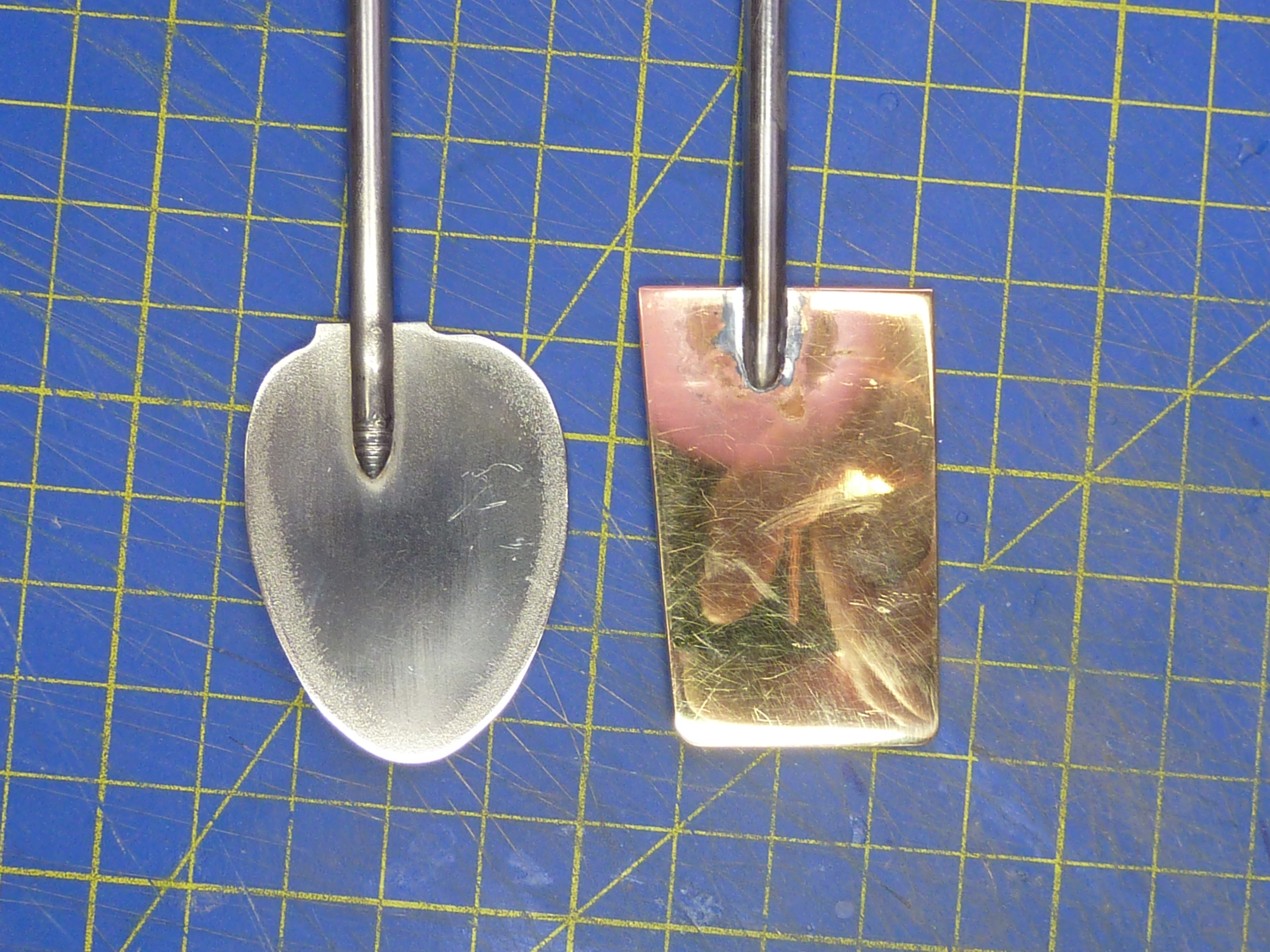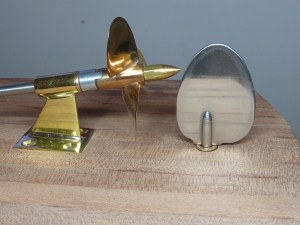 The slotted and tapered ground steel rod with the brass rudder fin.
