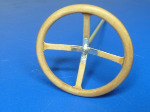 And here’s the item after staining and varnishing, with the kit item alongside. The camera hasn’t picked out the delicate grain of the rim which is a pity.