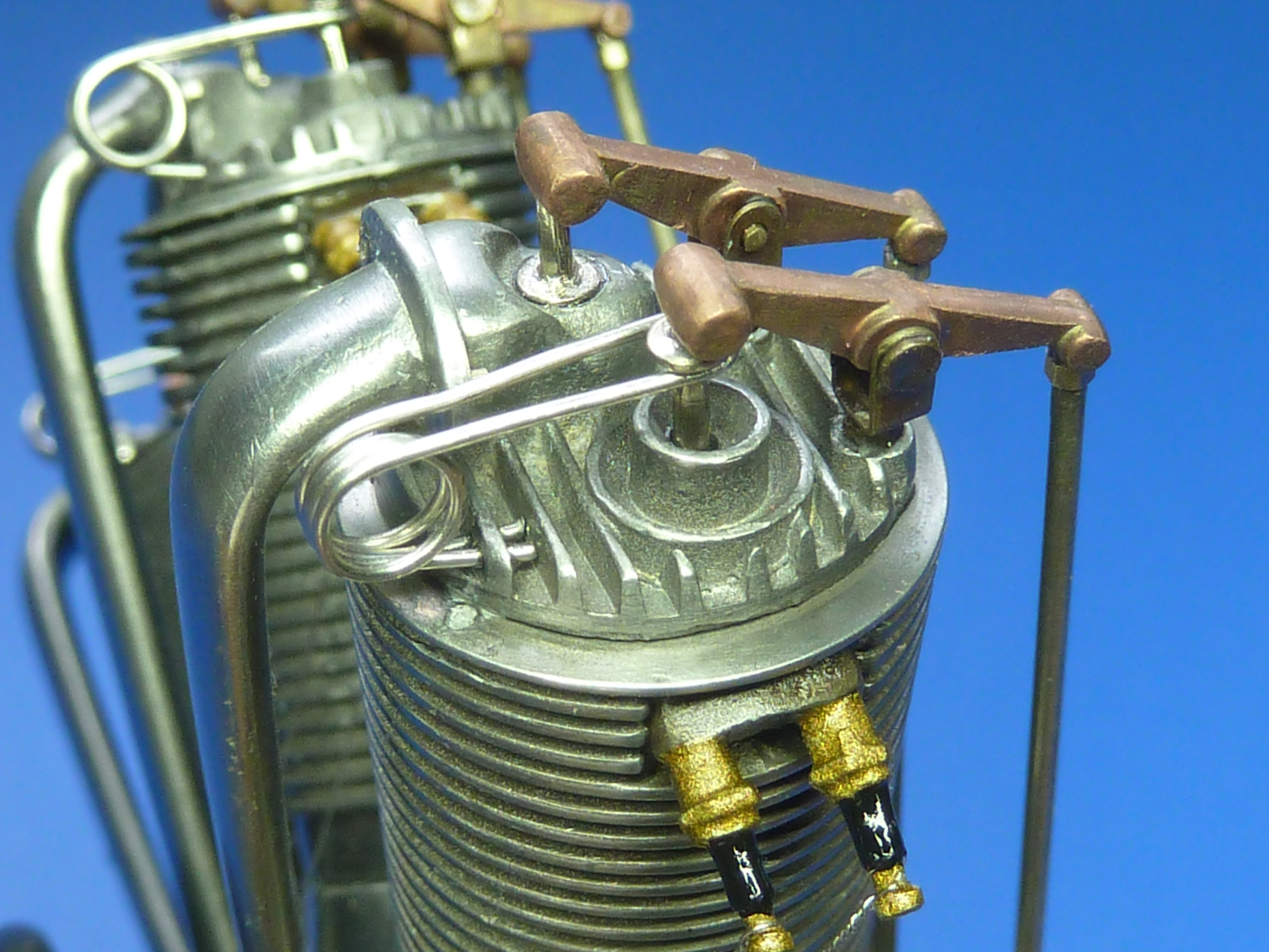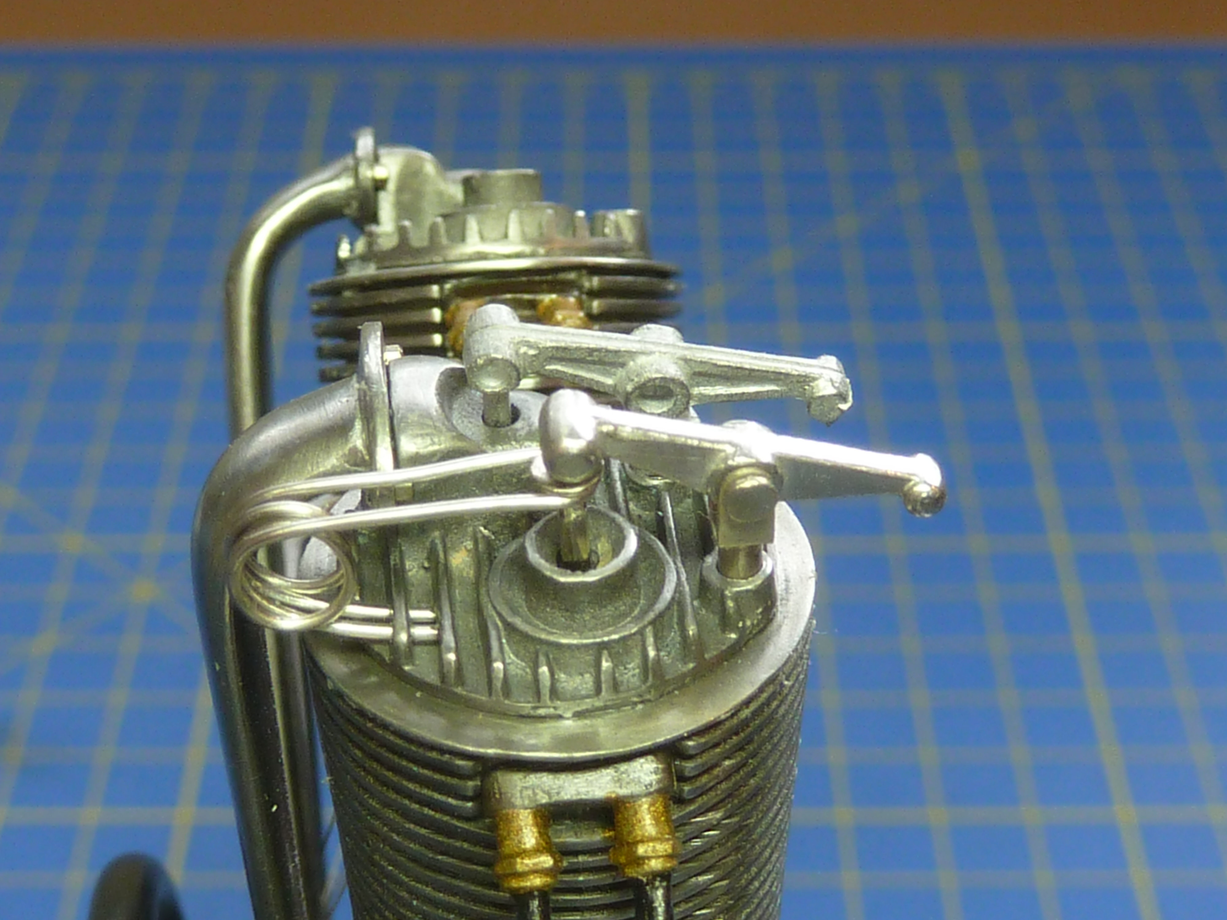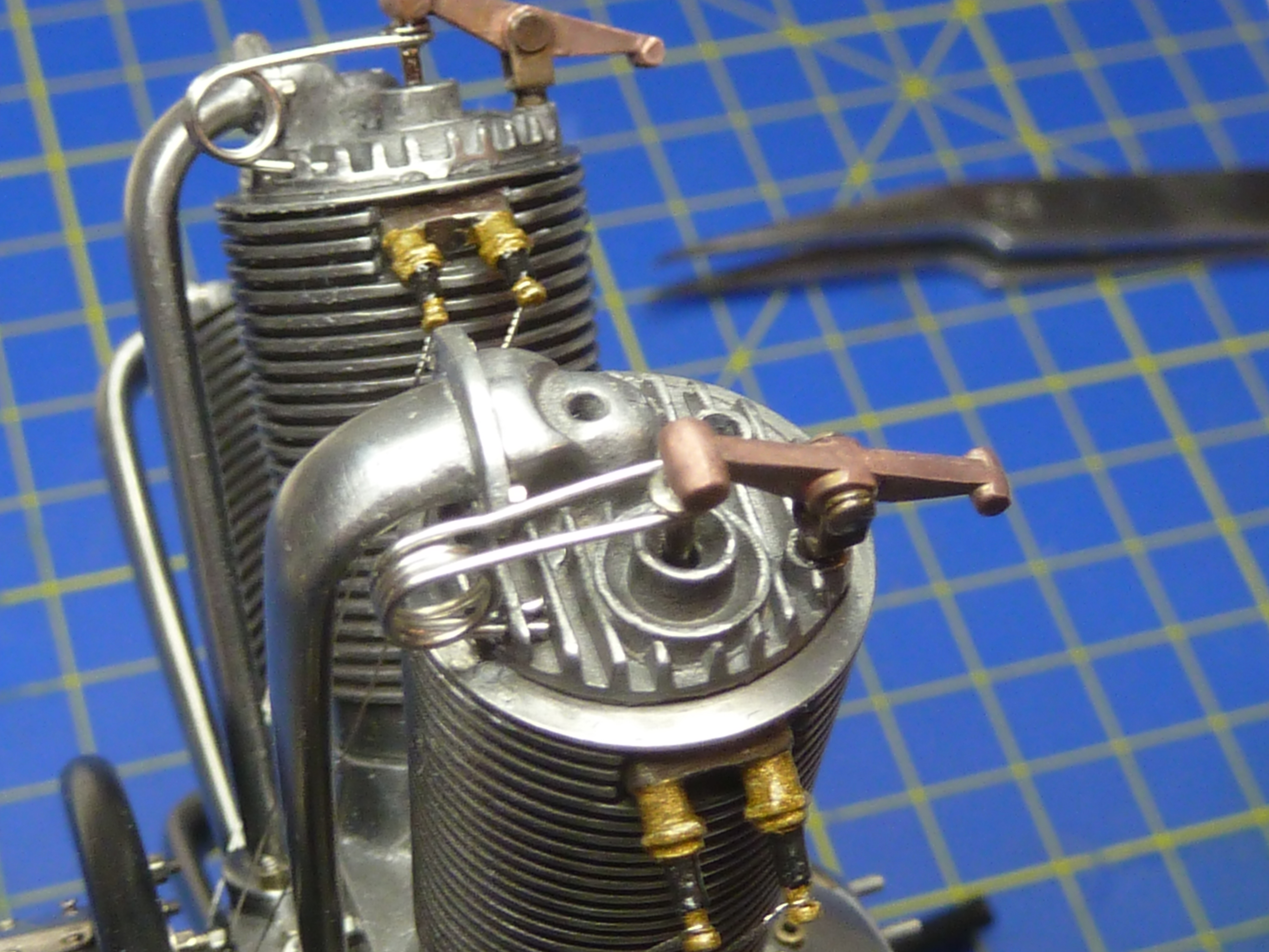 Only the pushrods and valve gear remained to be completed since the last update. The kit’s versions are quite good, and I used them pretty much unchanged on the plastic kits, bar the introduction of some home made springs and thinner steel rods. This time I wanted to go a little further.