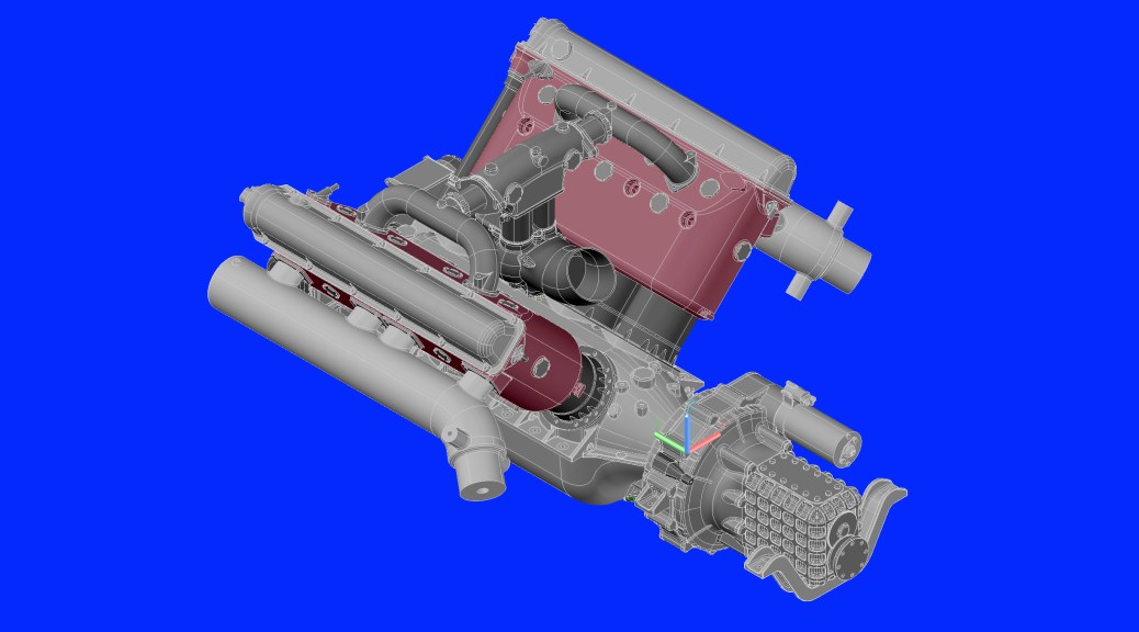 The CAD work on the licence built Hispano-Suiza 8F (Wright-Martin H3) is complete. The model has been made as per the aircraft version of the engine, but with some marine conversion parts added. The most notable and visible of those being the water cooled exhausts.