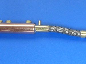 Once formed black heatshrink was slipped over the whole assembly and shrunk on with a heat gun. To allow the pipe to mate to the parts already on the engine I placed another, slightly larger, tube over the end of the copper core to give me a slightly flared end. That was then removed. Obviously you need to use heatshrink without glue for this process.