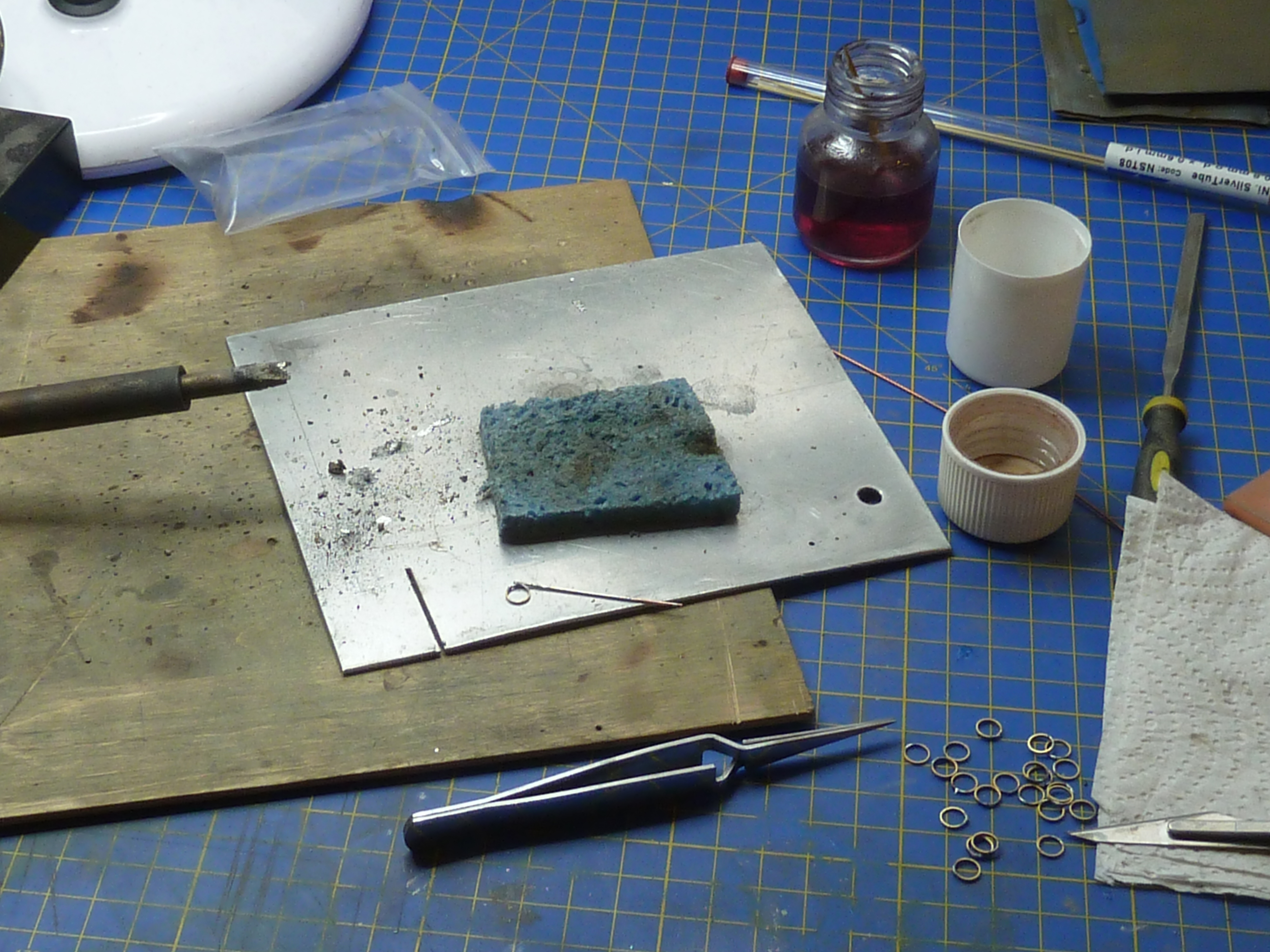 The coolant hoses also required the making of several batches of faux jubilee clips. These are fairly simple but take time. An appropriately sized tube is cut into thin sections and some thin (0.8mm OD) tube soldered to the rim. The whole assemble is bright nickel plated. As a final flourish a brass pin which has had its head slotted and then been bright nickel plated is glued into the cross tube to look like the screw mechanism.